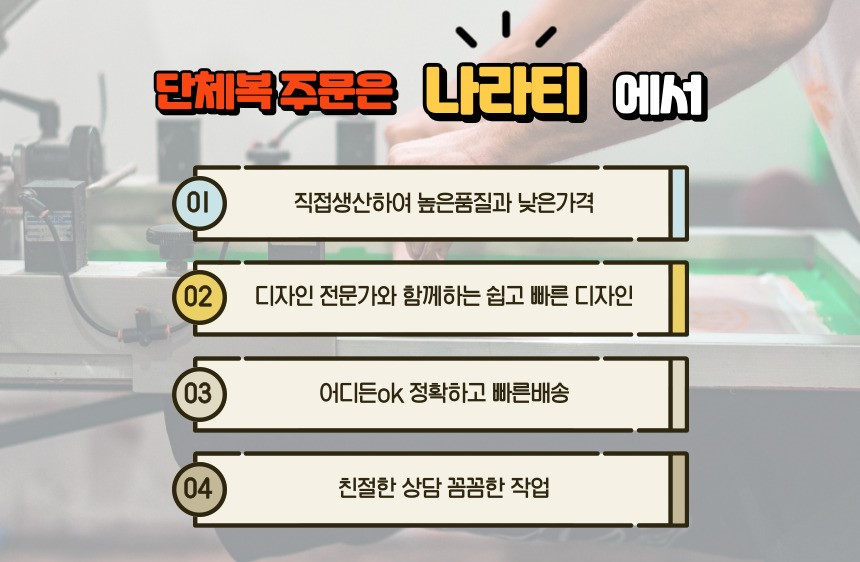단체티 특성상 10장 이하 구매시 상품 1개당 +1,000원의 추가요금이 발생 하오니 참고 바랍니다. 일부 품목은 최소 주문 수량이 있거나 품절일 수 있습니다.