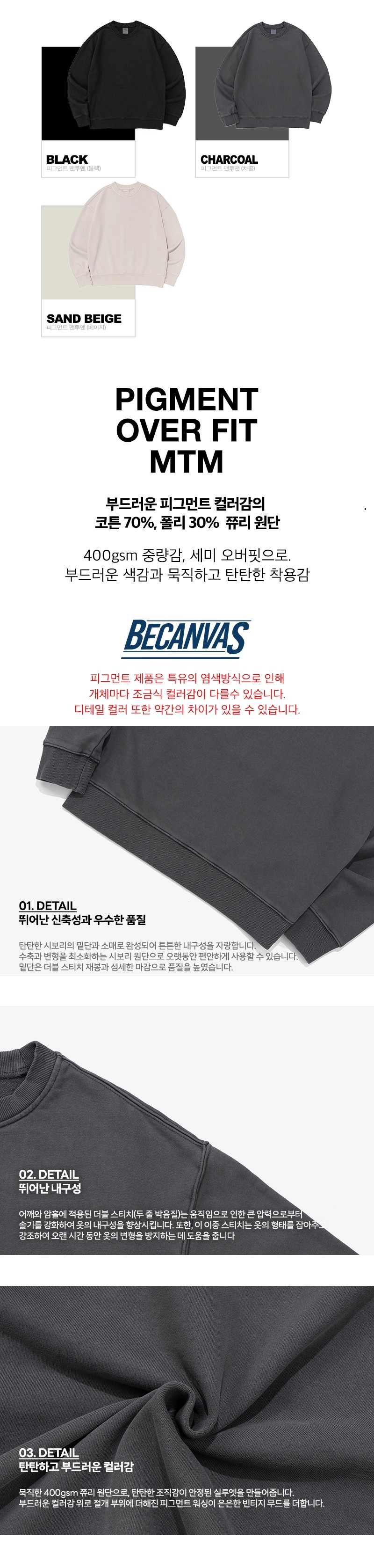 피그먼트 오버핏 2WAY 맨투맨